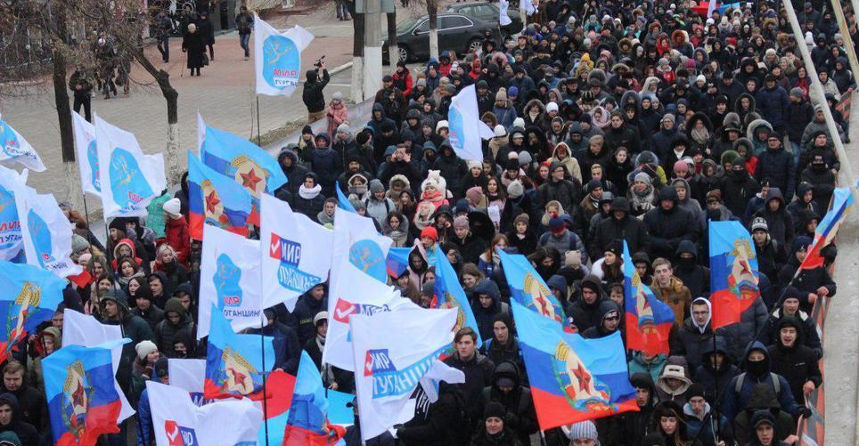 лозунгами «Когда мы едины, мы непобедимы», «Один за всех и все за одного», «Луганск