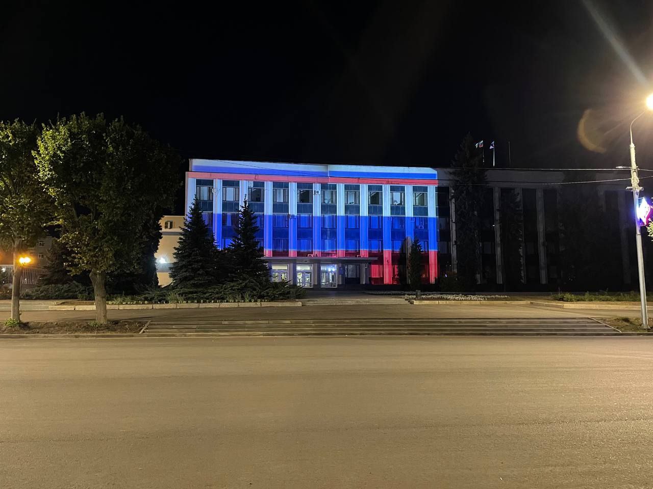 "Луганскгорсвет" установил 200 светодиодных флагов на опорах внешнего освещения вдоль центральных улиц.