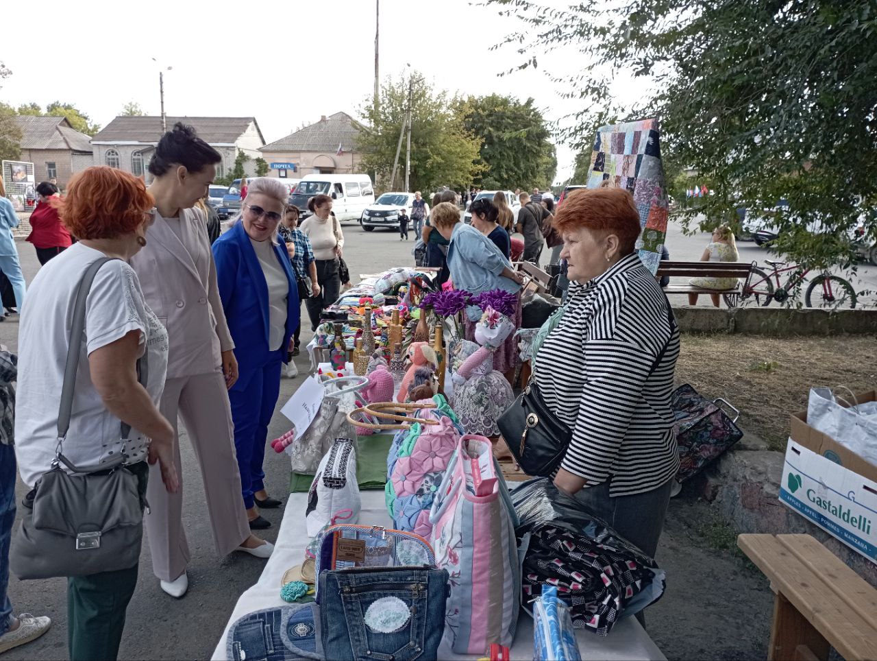 добрые друзья александровцев - семейный ансамбль Дьяченко из города Суходольска. Также на площади была организована выставка творческих работ мастеров клуба «Левша».