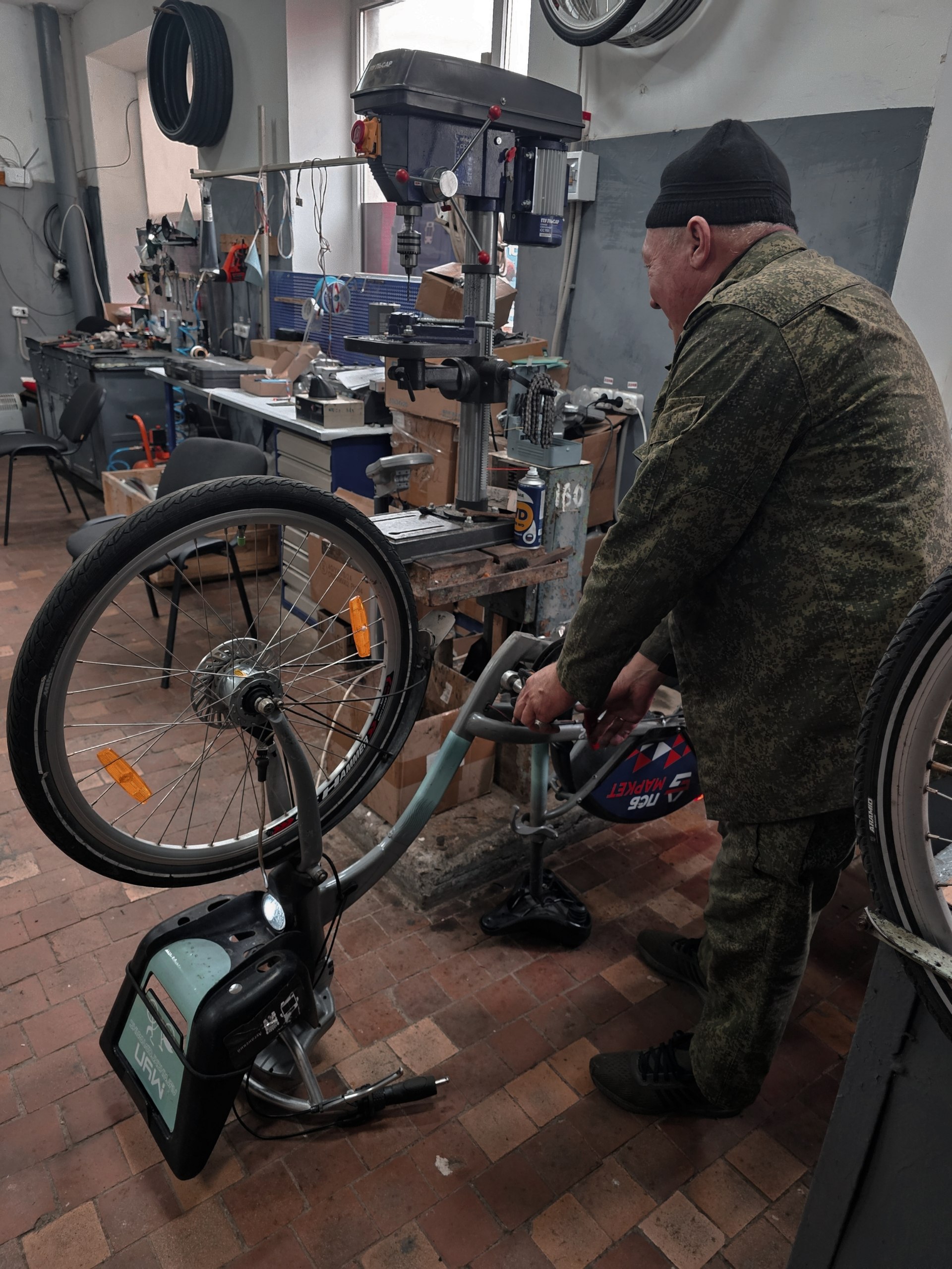 А новые велосипеды, которые только прибыли, уже ждут своей очереди. Специалисты проводят их наладку.