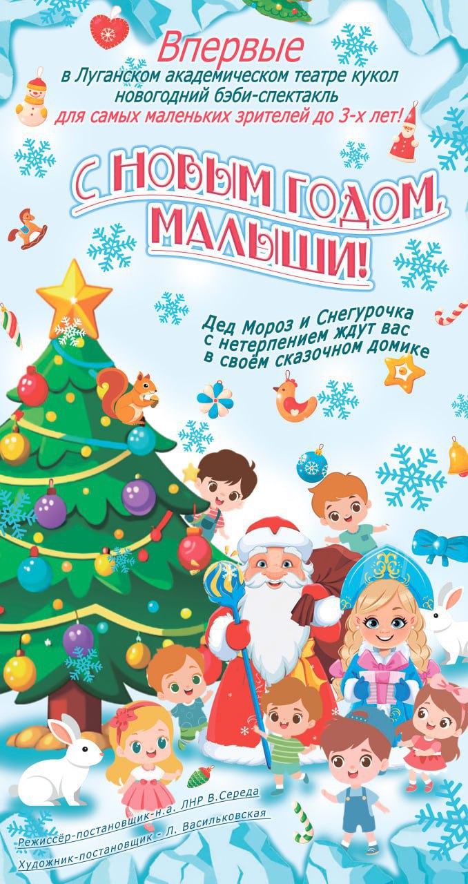 Луганчан и гостей города ждут Новогодние концертные программы с участием творческих коллективов Луганска, городов и районов Луганской Народной Республики на сцене площади перед театром им. Павла Луспекаева (Театральной площади) с 27-го по 30-е декабря и со 2-го по 7-е января с 15.00.
