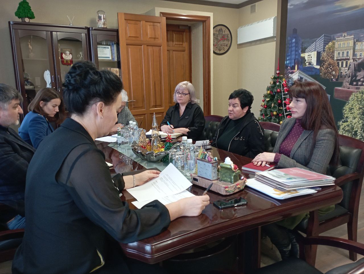 Яна Валерьевна обсудила с Юлией Геннадьевной и Натальей Ивановной проблемные вопросы, среди которых были вопросы бытового и коммунального характера - ремонта кровли, подключения газового котла, санаторно-курортного оздоровления, социальной защиты и мер социальной поддержки семей участников СВО.