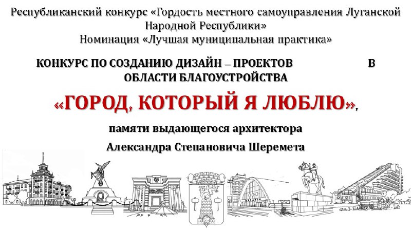 Советом городского округа города Луганска объявлен старт конкурса "Город, который я люблю" в память о выдающемся архитекторе Александре Степановиче Шеремете! Дорогие жители Луганска!