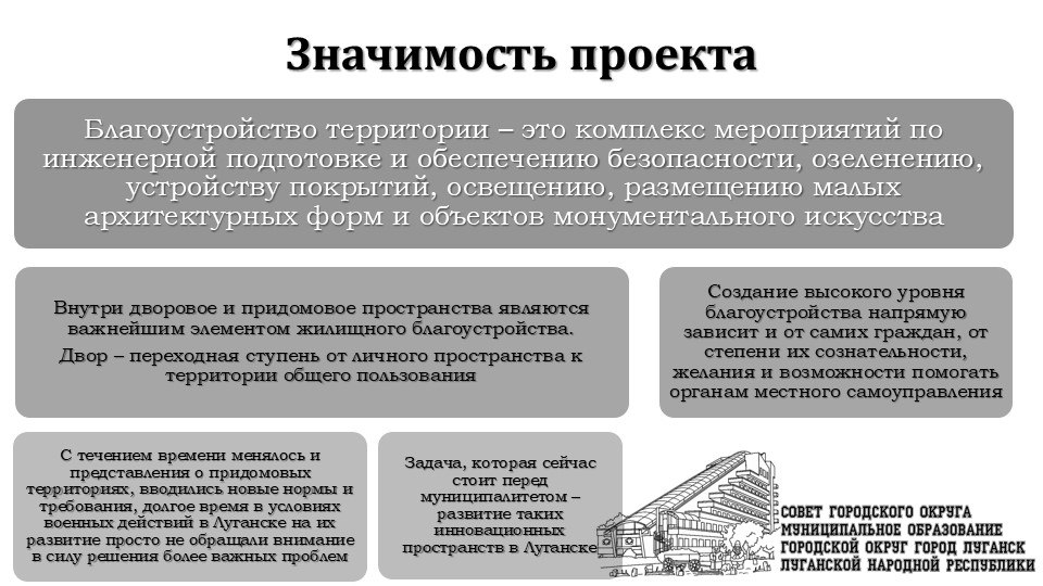В рамках открытого собрания фракции "Единая Россия" в Совете города Луганск с участием представителей образовательных организаций и общественных деятелей было утверждено положение о конкурсе, которое направленно на создание дизайн-проектов в области благоустройства территорий нашего родного города. Этот конкурс посвящен памяти человека, который навсегда оставил свой след в истории архитектуры, и призван вдохновить нас всех на новые свершения в оформлении нашего общего пространства.