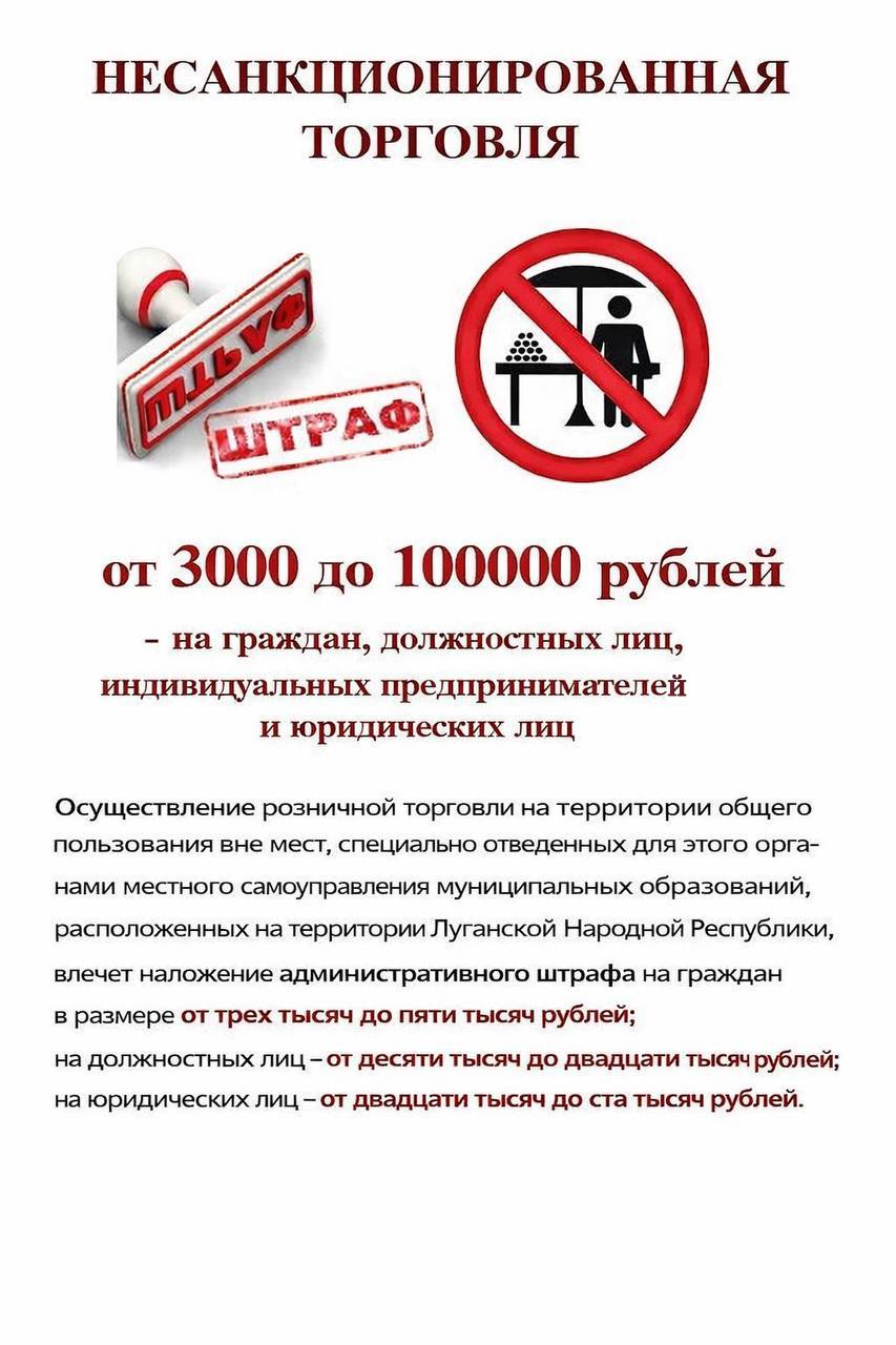 Должностными лицами Администрации на постоянной основе проводятся мероприятия, направленные на недопущение несанкционированной торговли на территории муниципального образования городской округ город Луганск Луганской Народной Республики.
